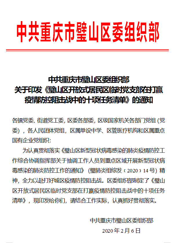 璧山區(qū)開放式居民區(qū)臨時黨支部