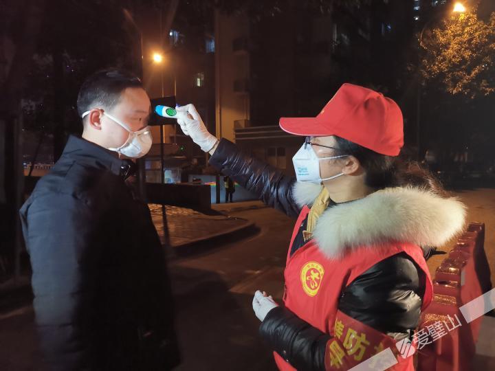 當他站起來活動僵硬的筋骨,正好看到一個小區居民急匆匆準備出門,余亮趕緊攔住了他。“這么晚還出門,帶了身份登記卡了嗎?先測一下體溫。”登記完居民的信息,余亮的手機響了起來。