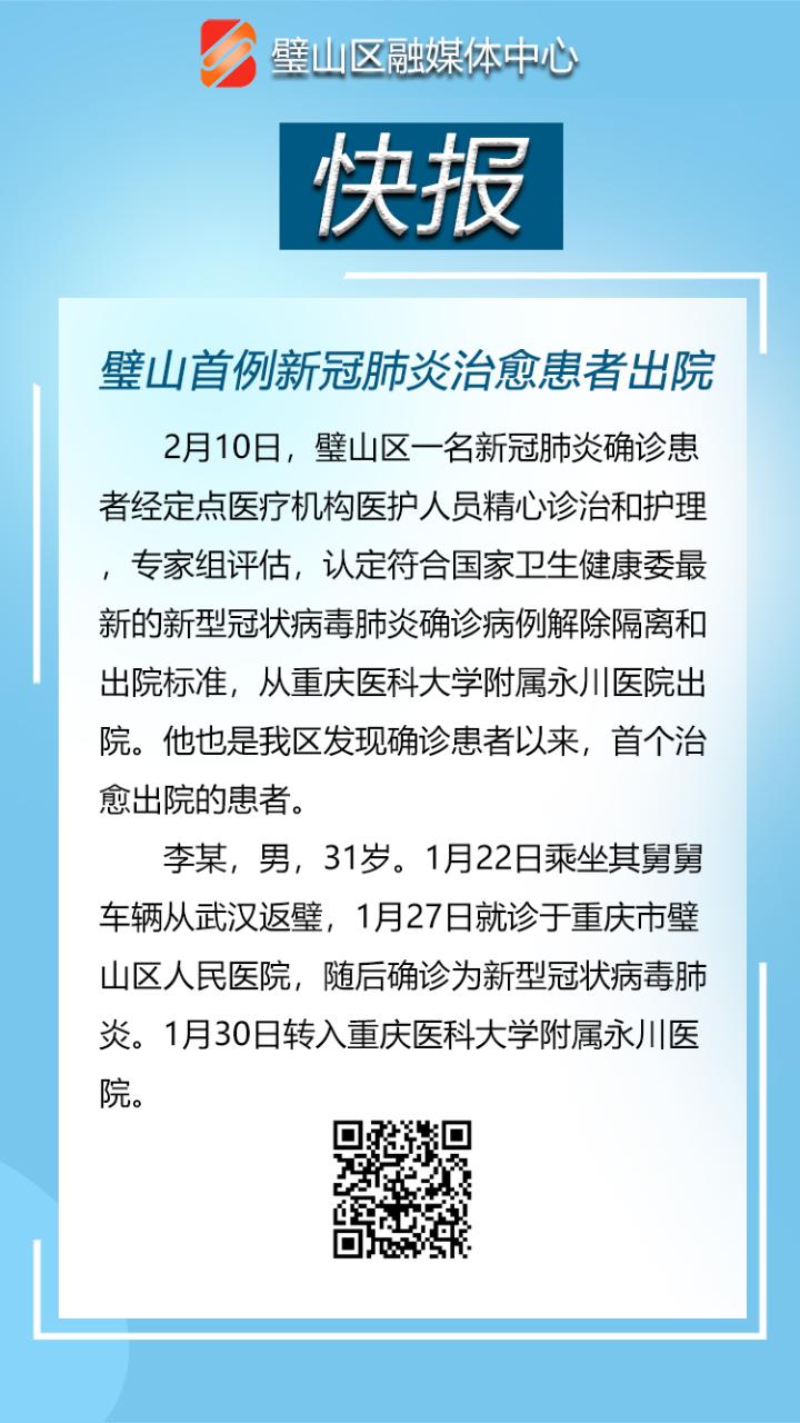快訊 | 好消息,璧山首例新冠肺炎治愈患者出院!