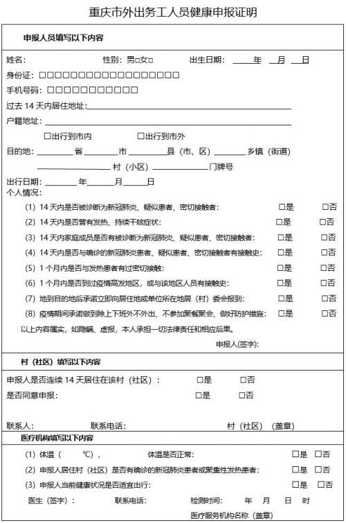 附件:重慶市外出務(wù)工人員健康申報(bào)證明