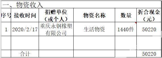 璧山區慈善會抗擊“ 新冠肺炎”捐贈物資收支匯總表
