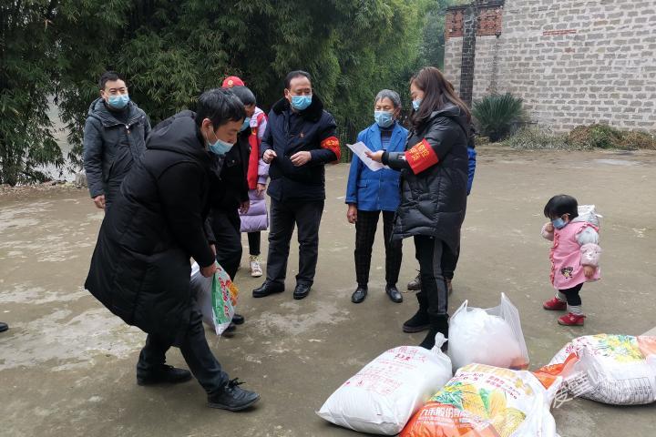 “老陳,出來領農資了哦!”219日,在來鳳街道鹿河村7組,村干部和志愿者一起,為村民陳肇文送來了復合肥、苞谷種和稻谷種。