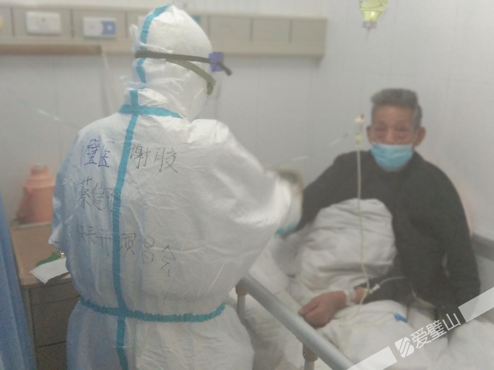 病區里還經??吹竭@樣的畫面:穿白色防護服的“大白”和穿黃色防護服的“小黃人”,一起給行動不便的8旬爺爺翻身、調整臥位;穿綠色防護服的“綠巨人”,凌晨五點還穿梭在病區送“溫暖”……