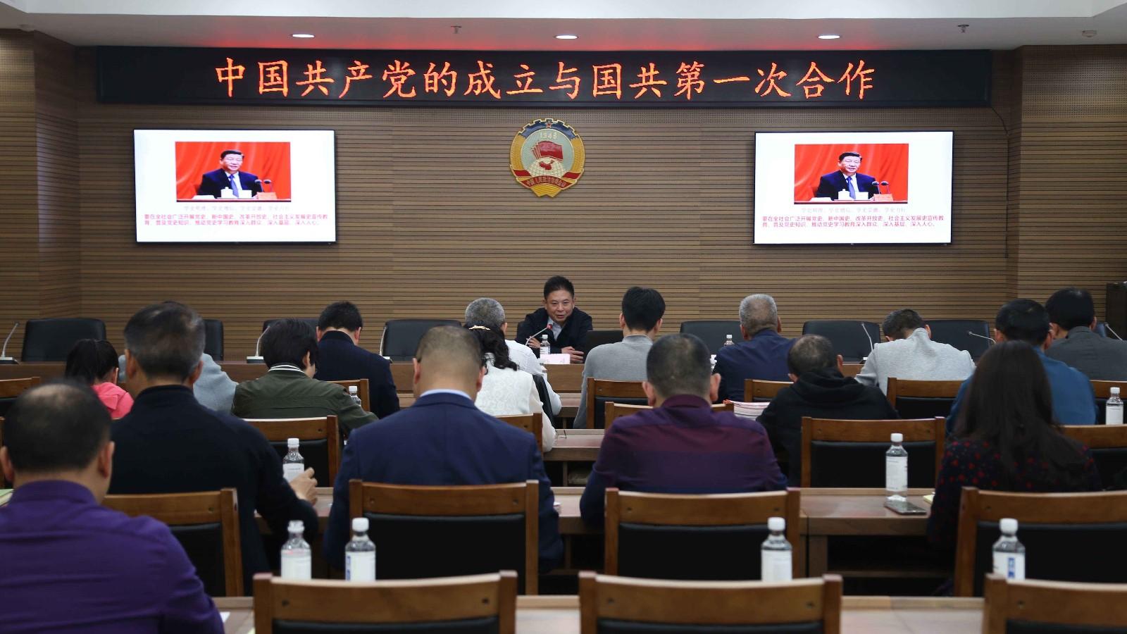 學習會上,楊靖結合黨史學習教育,圍繞中國共產黨成立的歷史背景、中國共產黨的第一次全國代表大會、第一次國共合作的歷史背景、第一次國共合作的意義以及第一次國共合作的幾位重要人物等方面,以“中國共產黨的成立與第一次國共合作”為題開展了黨史學習教育的專題講座。隨后,會議傳達學習了全國“兩會”精神,通報了2020年經濟委各項任務完成情況,安排布置了專委會2021年的相關工作。