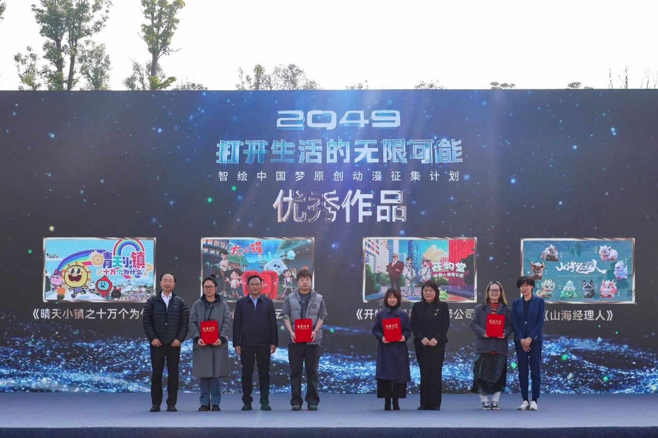 活動現(xiàn)場發(fā)布了“2049:打開生活的無限可能——智繪中國夢”原創(chuàng)動漫征集結(jié)果,為獲得優(yōu)秀作品代表頒獎;播放了璧山區(qū)動漫產(chǎn)業(yè)發(fā)展視頻,發(fā)布了璧山區(qū)動漫項目計劃。隨后,與會領(lǐng)導和嘉賓共同啟動慶祝新中國成立75周年動漫經(jīng)典大展開展,并在儀式結(jié)束后共同前往各展區(qū)參觀巡展。