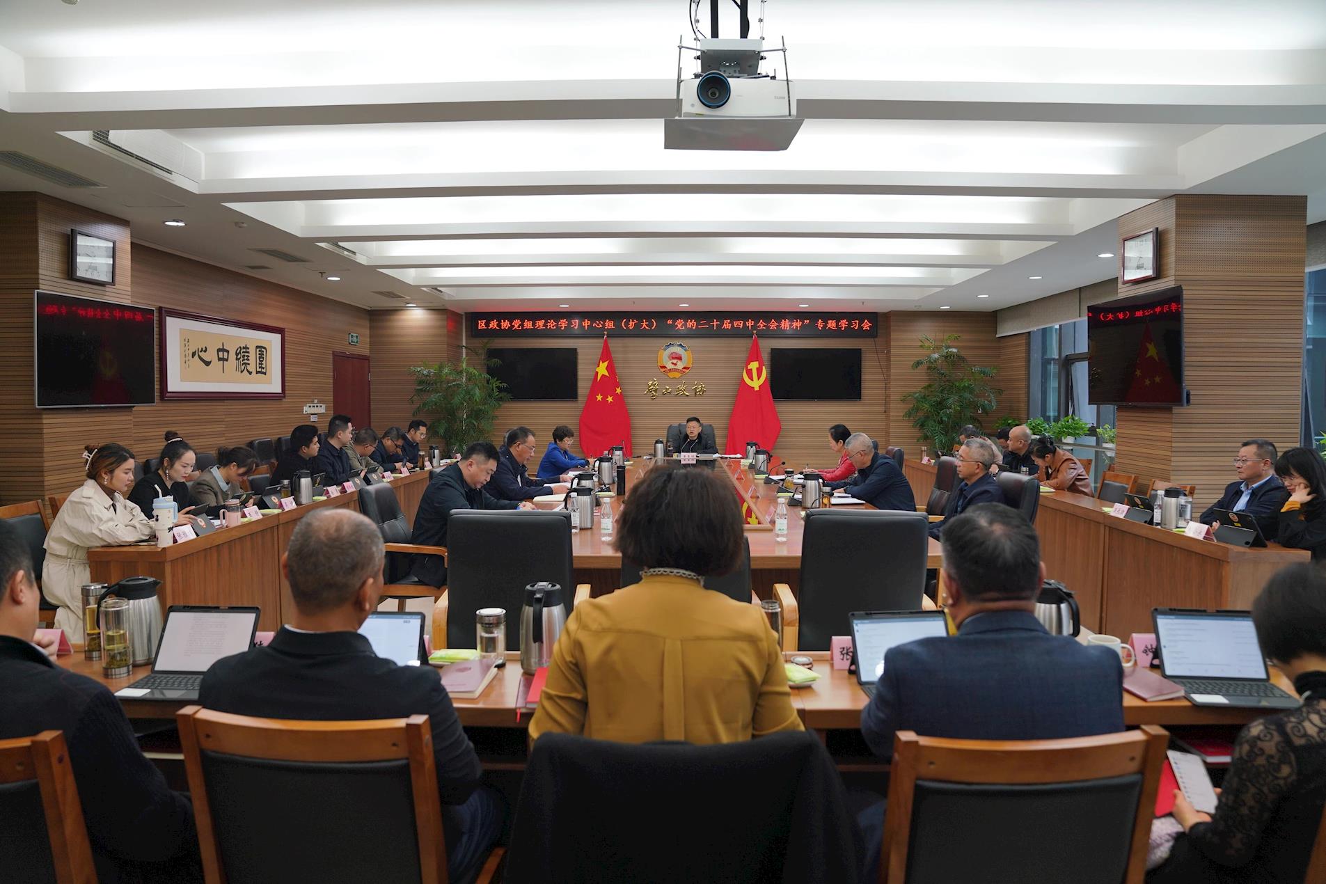 10月30日,區政協黨組理論學習中心組(擴大)專題學習會召開,深入學習貫徹黨的二十屆四中全會精神。區政協黨組書記、主席黃孝明主持會議并講話。